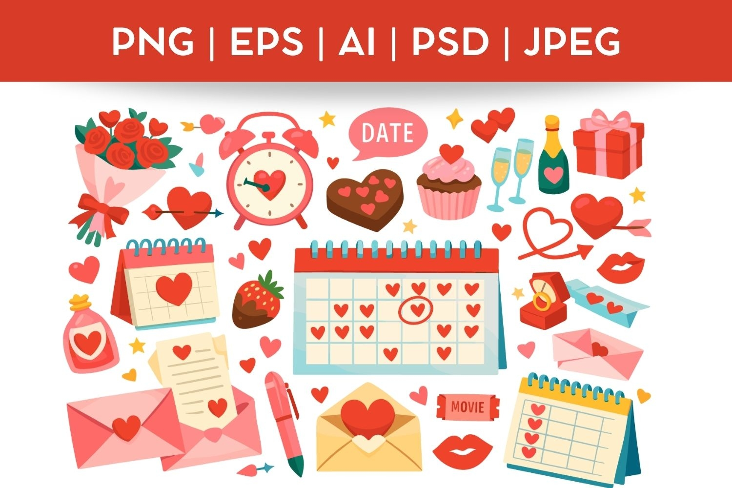 Cute Valentine's Day Bundel| Vector & PNG Illustration