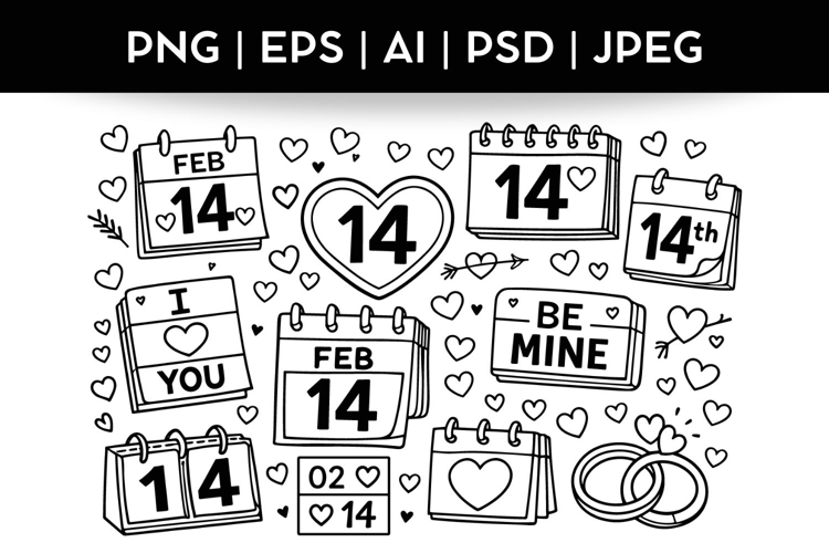 Valentine's Day Bundle Doodle|Vector & PNG Illustration