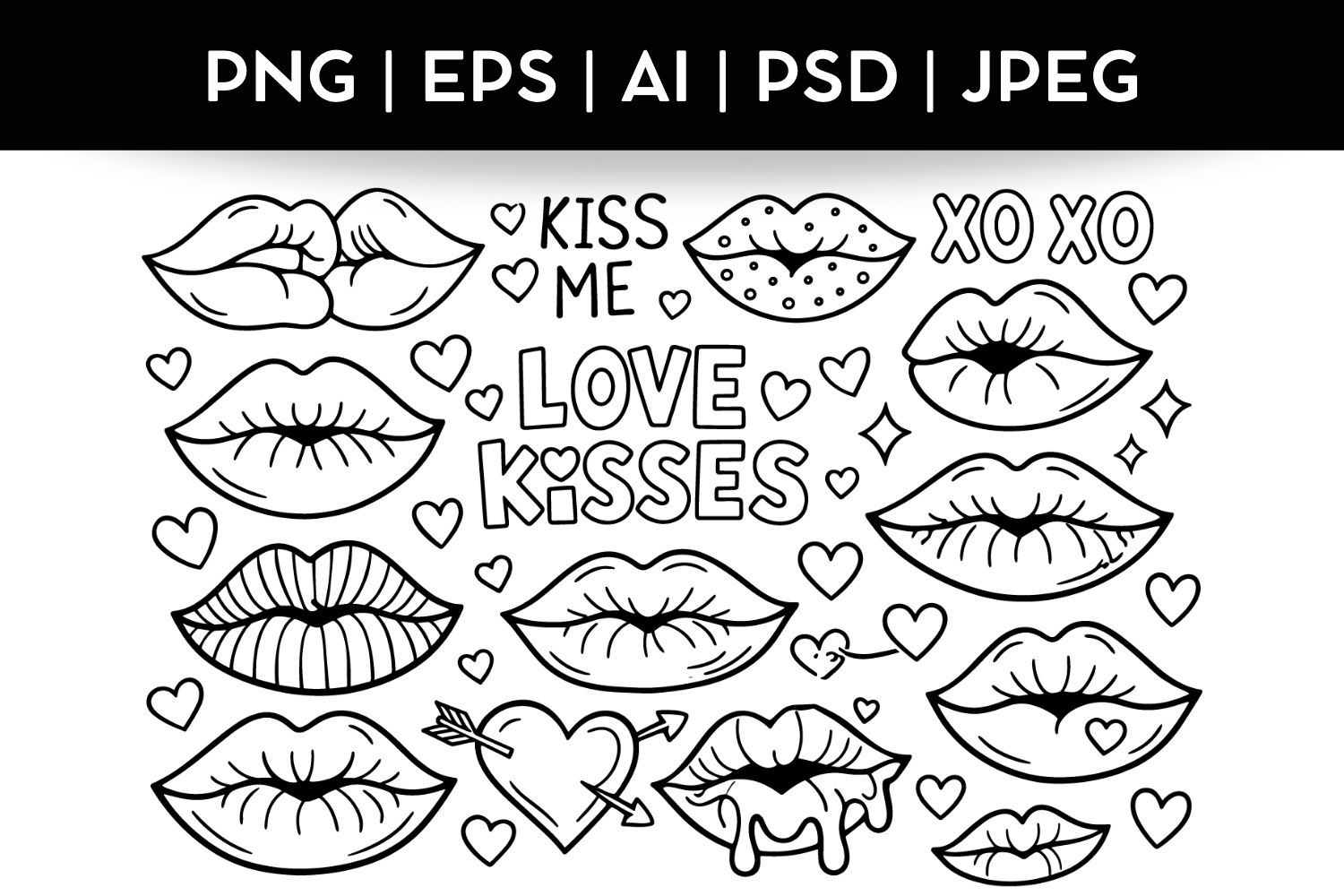 Similar Design Products to Kisses Bundle|Vector & PNG Valentine's Day Illustration