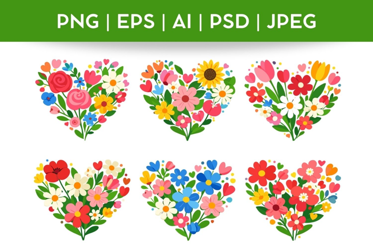 Heart Shaped Bouquet Bundle Doodle|Vector & PNG Illustration example image 1