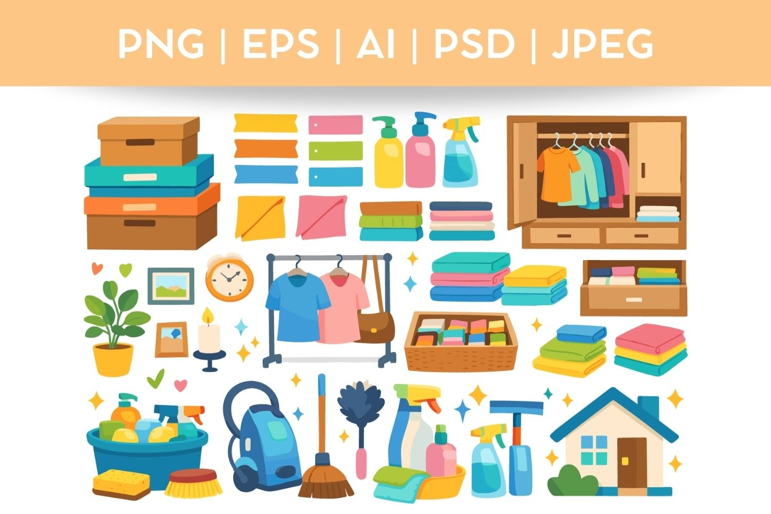 Home Cleaning Bundle Doodle|Vector & PNG Clothes