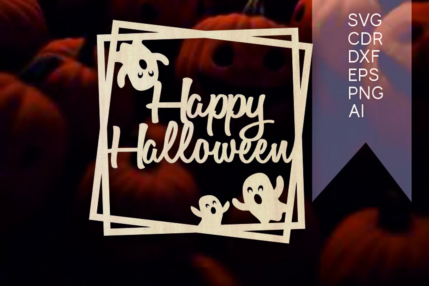 happy halloween decor laser cut, halloween party decor svg example image 1