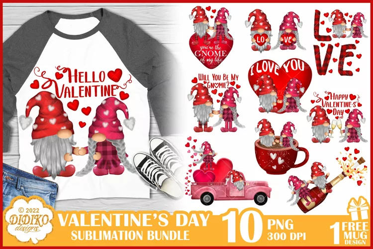 What a cooler way to celebrate Valentine's day, than making lovely t-shirts with these cute gnome couples, drinking wine, being on champagne, swimming in a coffee, and more? That's the right way to do it!