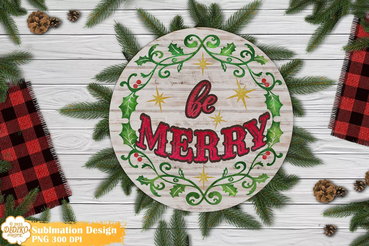 Be Merry Round Sign Sublimation Png,Christmas Round Sign Png example image 1