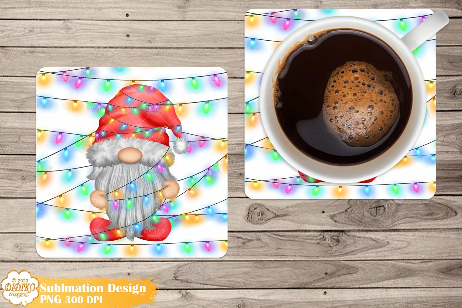 Christmas Coaster Sublimation, Holiday Gnome Square Coaster