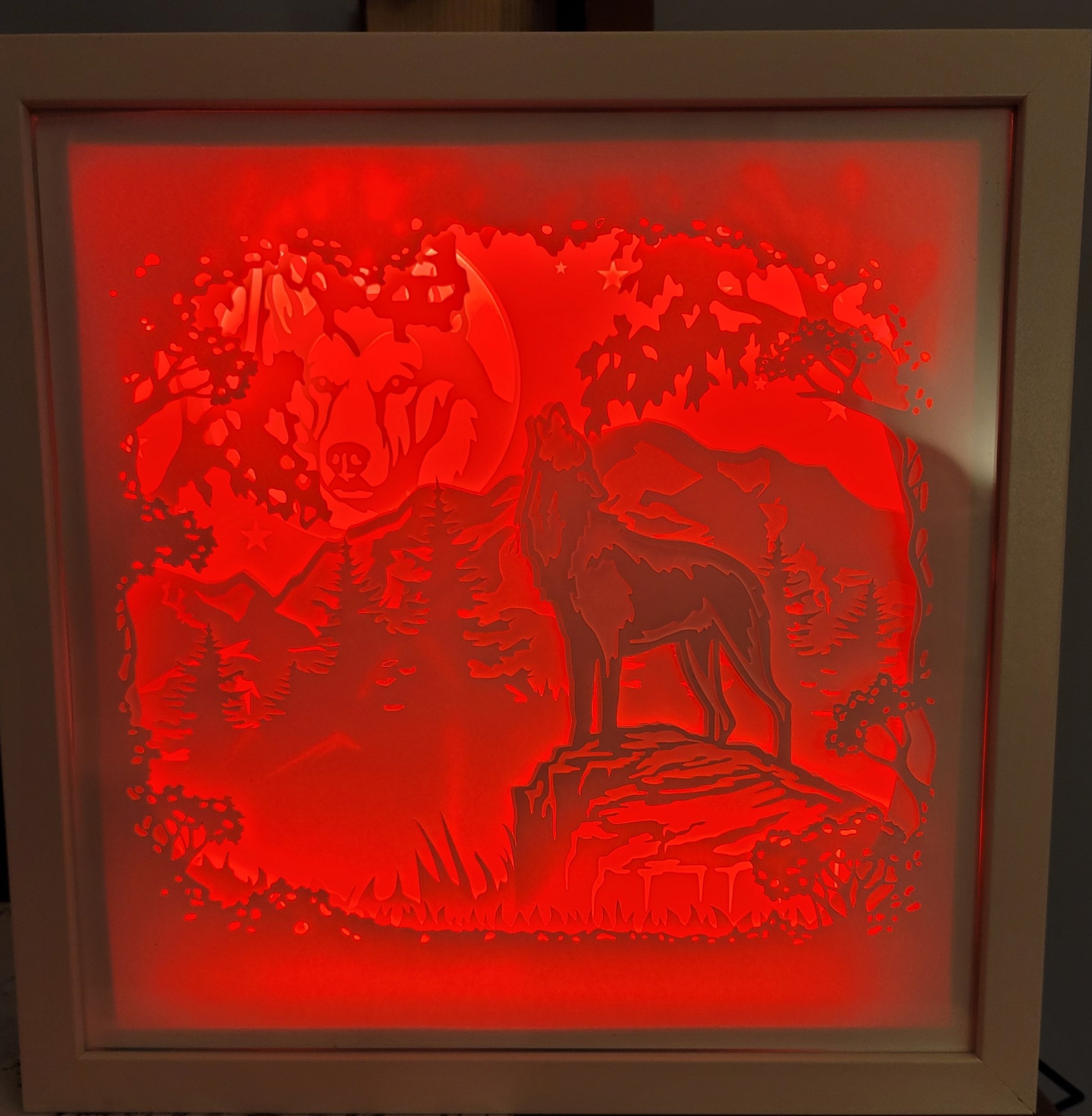 Full moon wolf Shadow box 3D paper layer artwork in EPS, PDF, SVG, DXF and AI format all in one zip file. Files cater for most of the laser cutting / Glowforge, Cricut and Silhouette machines.