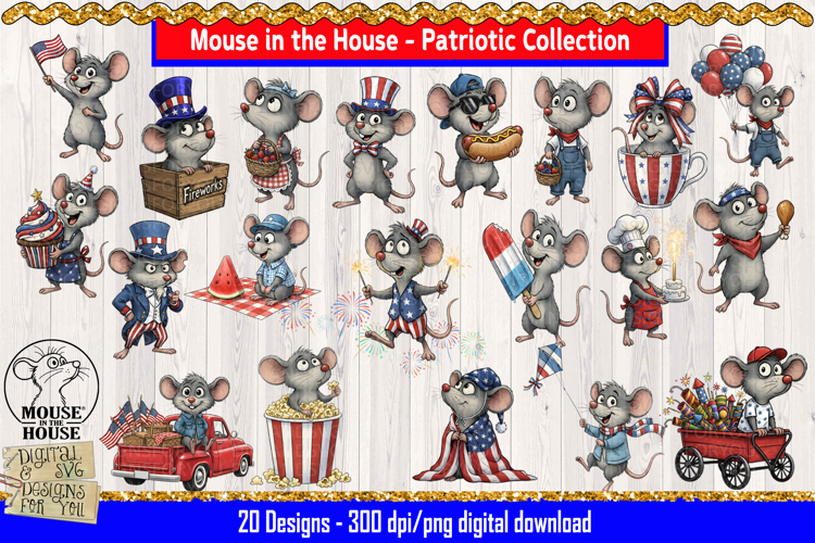 WHAT YOU WILL RECEIVE - 20 x Patriotic Mouse In the House Cliparts: