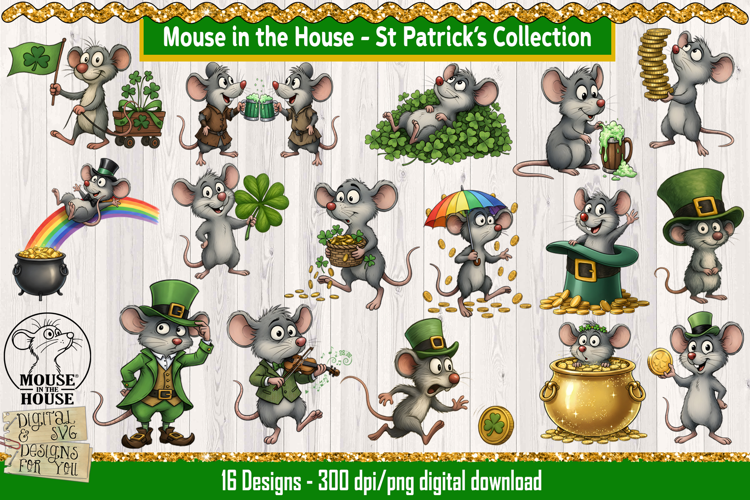 WHAT YOU WILL RECEIVE - 20 x St. Patrick's Mouse In the House Cliparts: