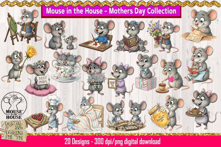 WHAT YOU WILL RECEIVE - 20 x Mother's Day Mouse In the House Cliparts: