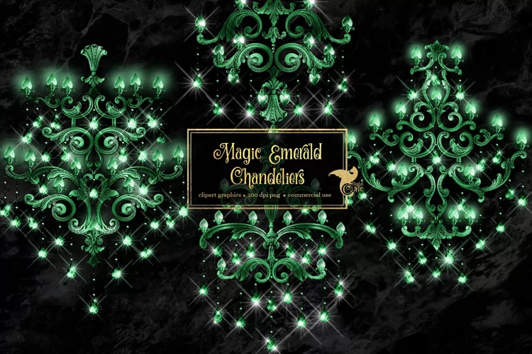 This collection of elegant emerald green chandeliers is perfect for your creative digital or print projects, especially good for weddings or save the date designs!