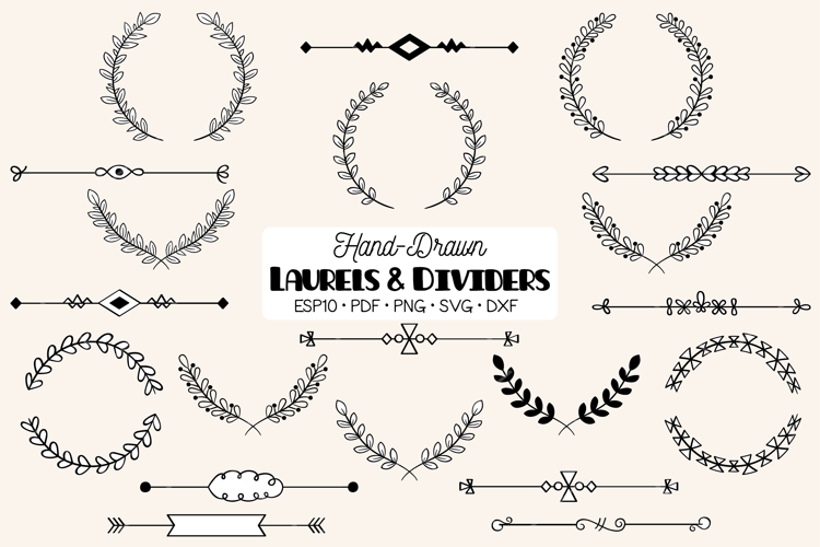 A bundle of decorative elements doodles; Aztec, geometric, hearts, wreath, leaf, monogram illustrations.