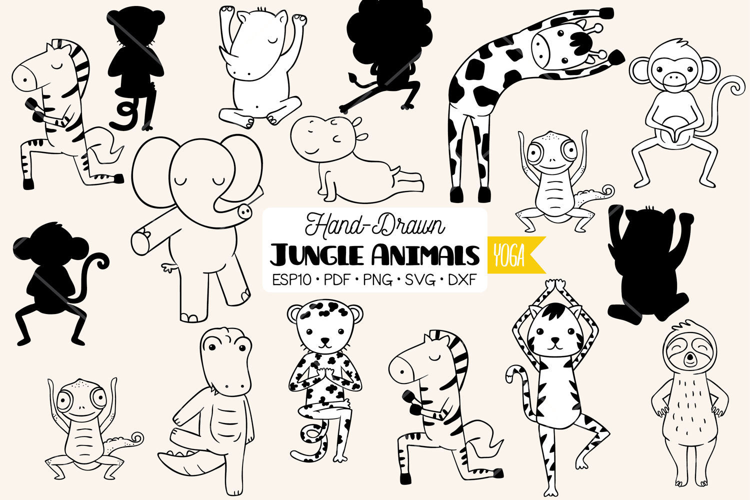 Hand-Drawn Jungle Animals Characters | Yoga Exercise example image 1