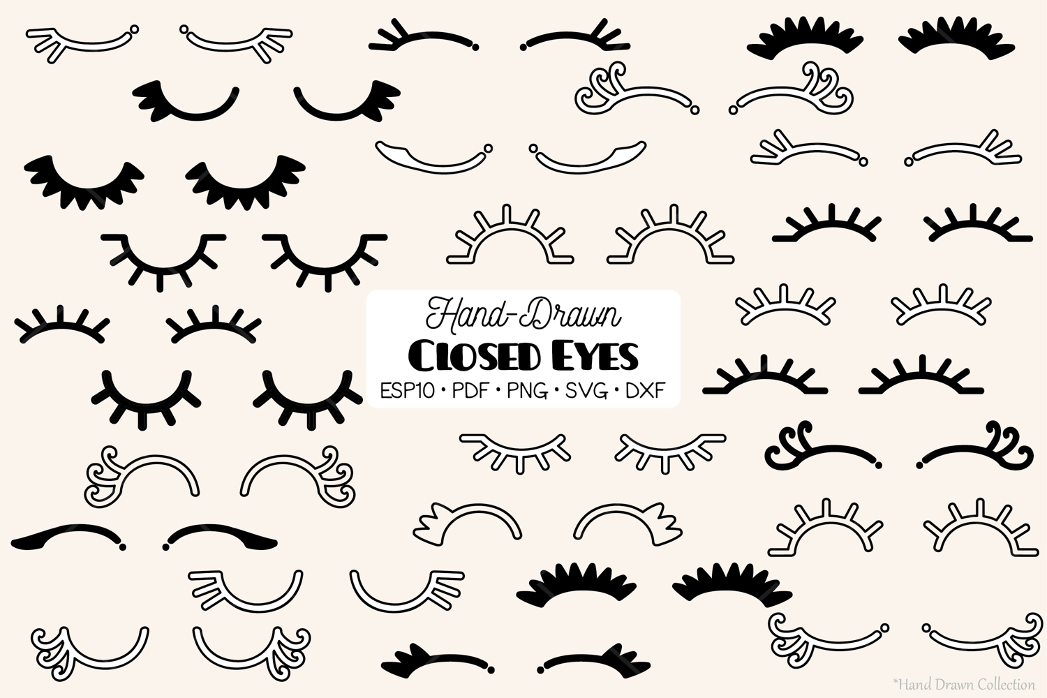 Closed Eyes | Hand Drawn Eyelash | Girls Sleepy Eyes