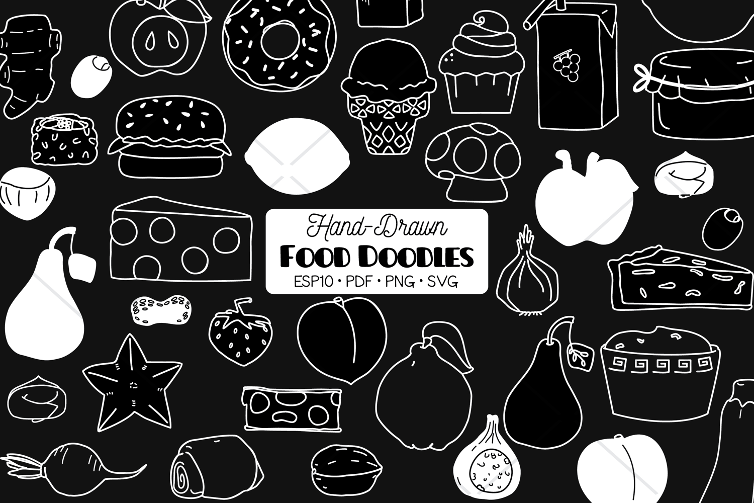 A-Z Food White | Hand Drawn Fruit, Vegetable, Sweets, Savory example image 1
