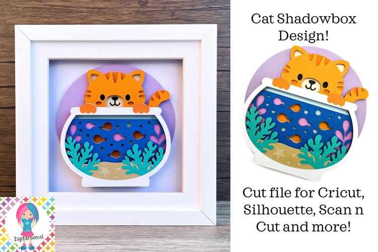 Paper Cut Svg Silhouette Svg Kids Room Decor Cat Svg Layered Svg Nursery Decor Svg Pet Papercut Cat Shadow Box Cricut Shadow Box Fish Bowl Svg
