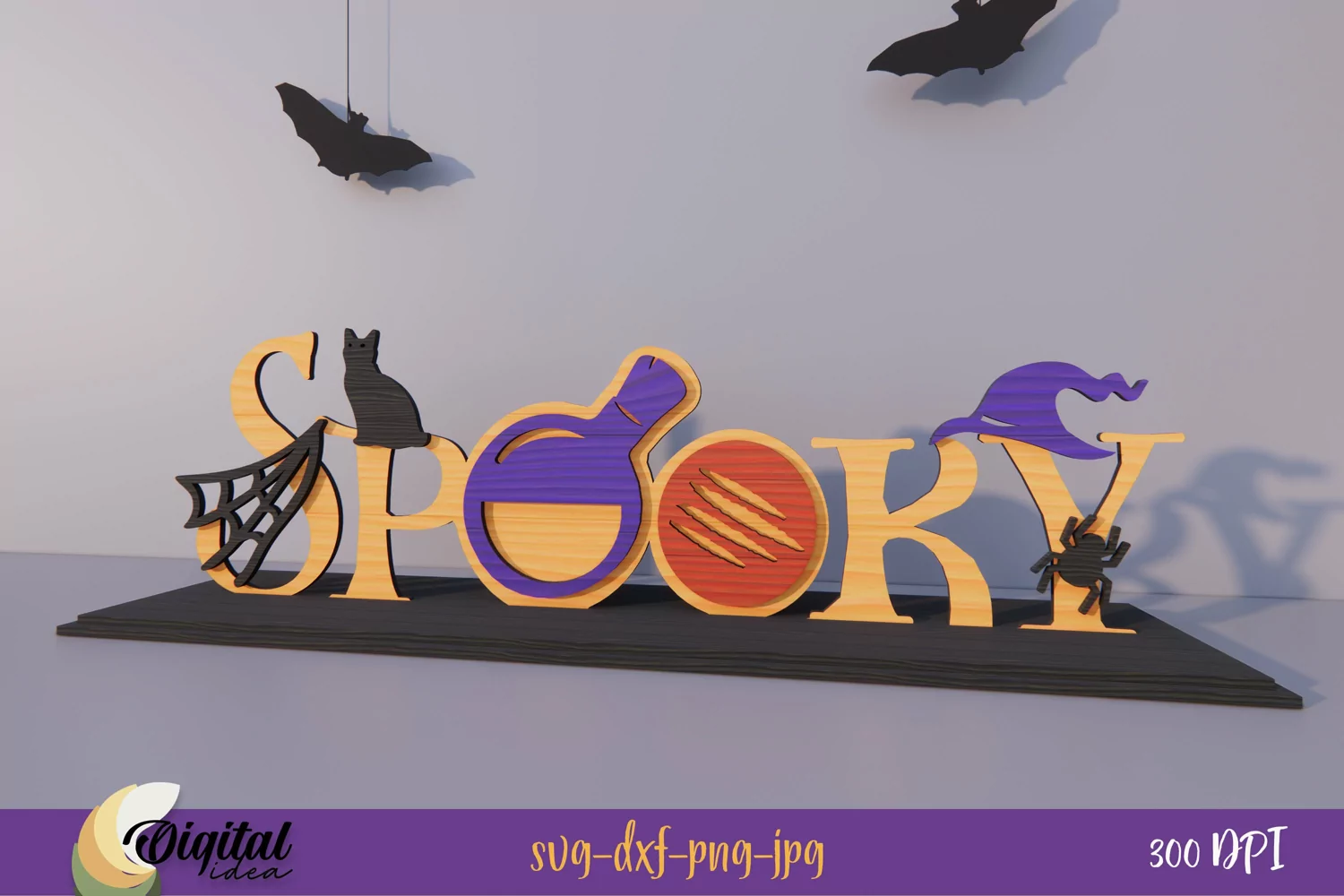 Halloween letter stands "Spooky" 3D LaserCut Design SVG.
