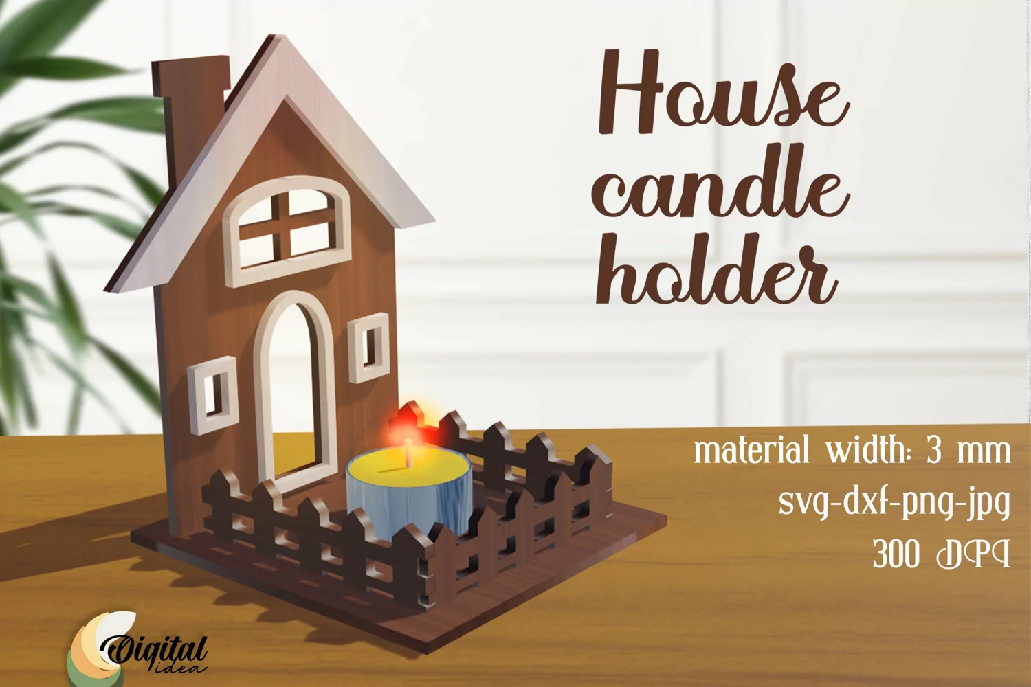 3D House Candle Laser Cut. House Candle Holder Laser Cut example image 1