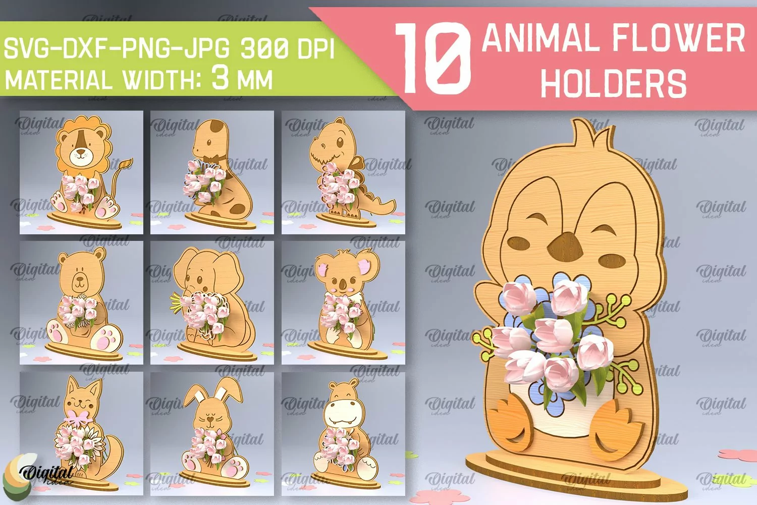 Animal Flower Holders Laser Cut Bundle. Mother's Day SVG