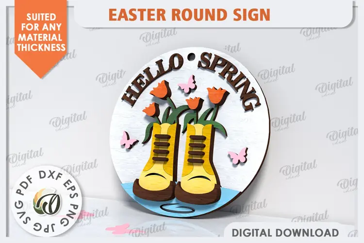 Easter Decor Home Decor Easter Sign Easter Welcome Sign Spring Sign Welcome Easter 3d Laser Cut Easter Round Sign Easter Laser Spring Boots