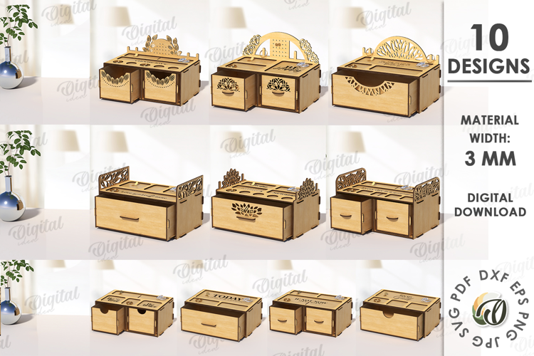 3D Wooden Jewelry Box Bundle Laser Cut. Small Gift Box SVG example image 1