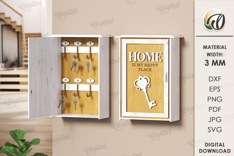 3D Key organizer box Laser Cut. Wooden Key Holder SVG