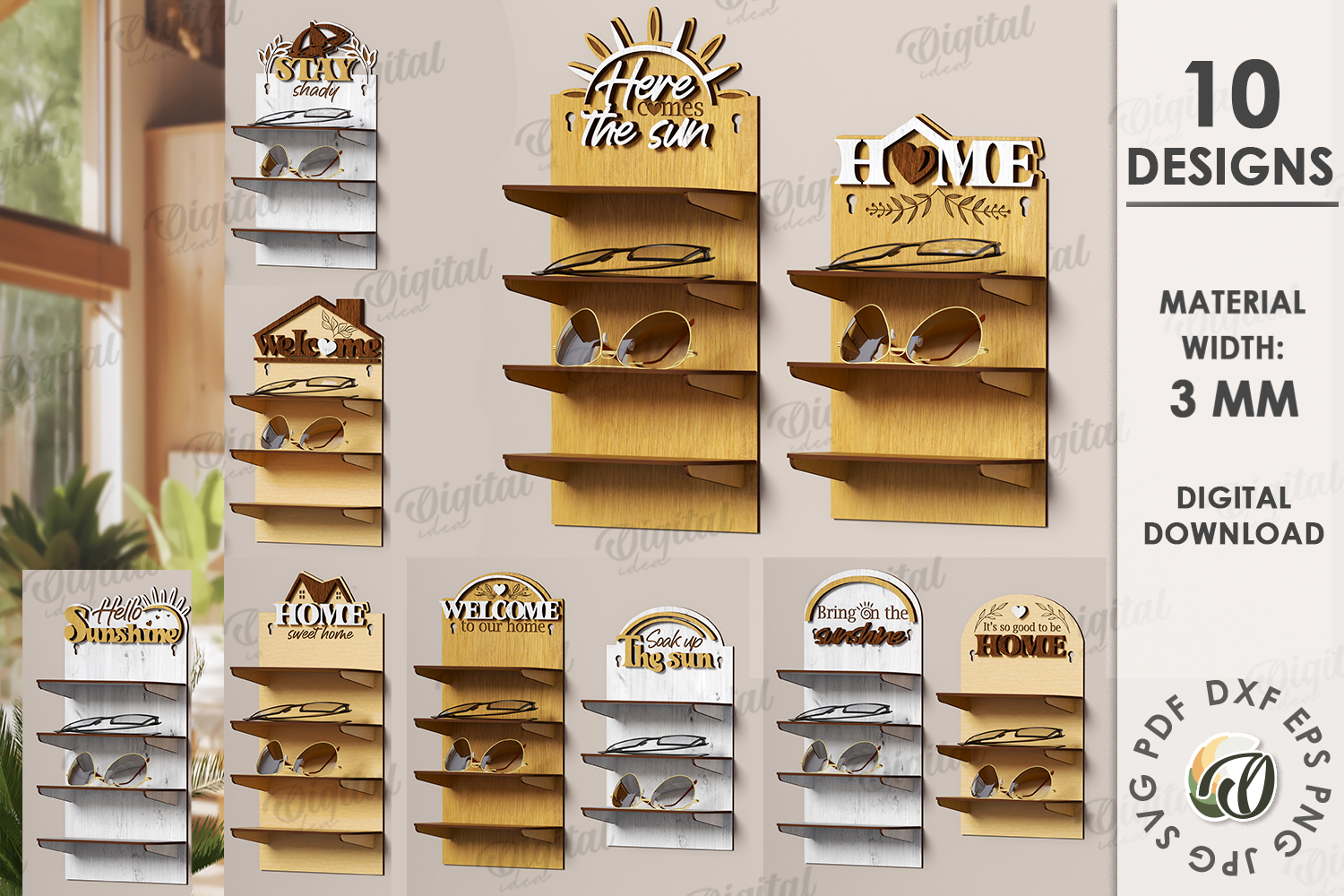 Sunglasses Shelfves Bundle Laser Cut. Home Decor SVG