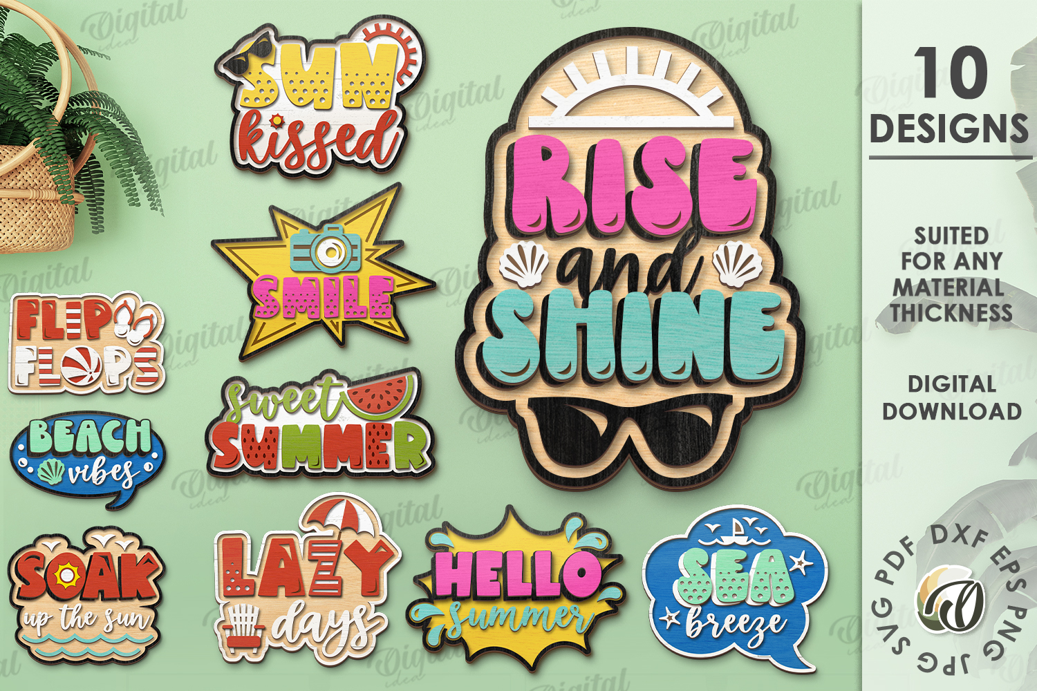 Your purchase will include zip folder with 10 designs in SVG, DXF, EPS, PDF, JPG and PNG file formats.