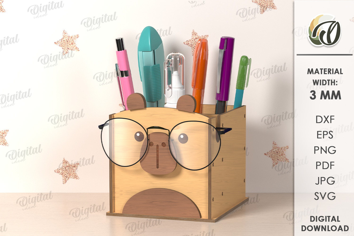 Similar Design Products to 3D Glasses and pencil Holder Laser Cut.Capybara SVG
