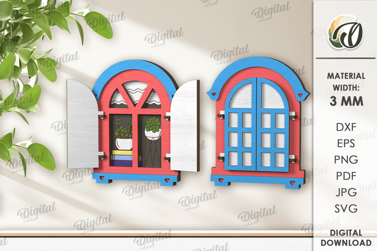 3D Wooden Window Ornament Lasercut. Home decor SVG