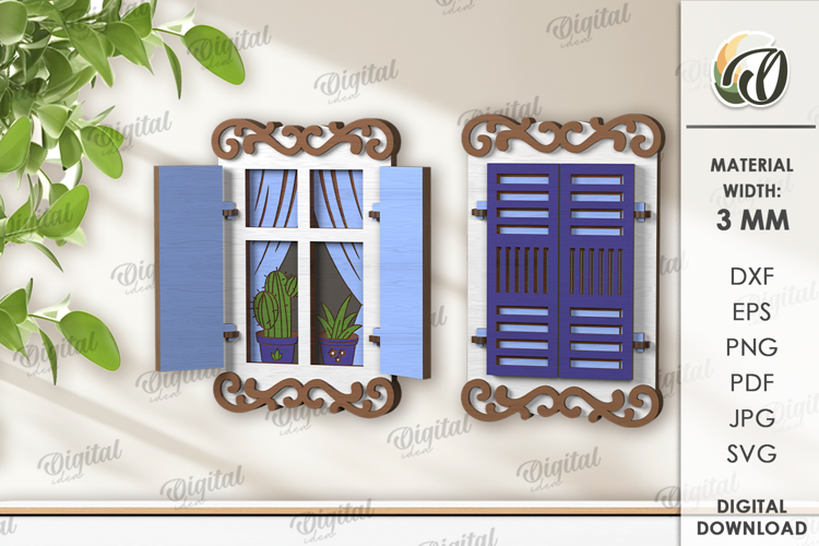 3D Wooden Window Ornament Lasercut. Home decor SVG