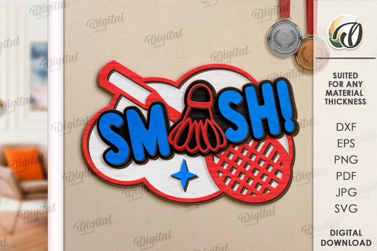 Layered Sport Sign Laser Cut. Badminton Wall Decor SVG example image 1