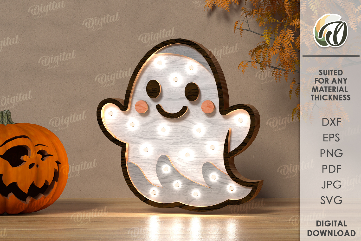 Home Decor Kids Room Cute Ghost Svg Led Lamp Night Light Laser Cut Lamp 3d Laser Cut 3d Light Box Halloween Laser Halloween Laser Cut