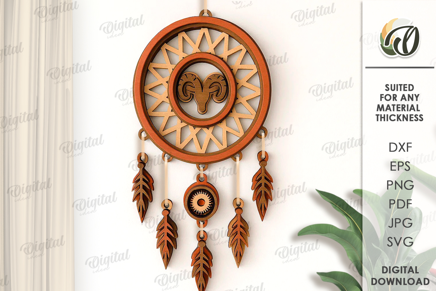 Similar Design Products to Zodiac Sign Dream Catcher Laser Cut. Aries SVG