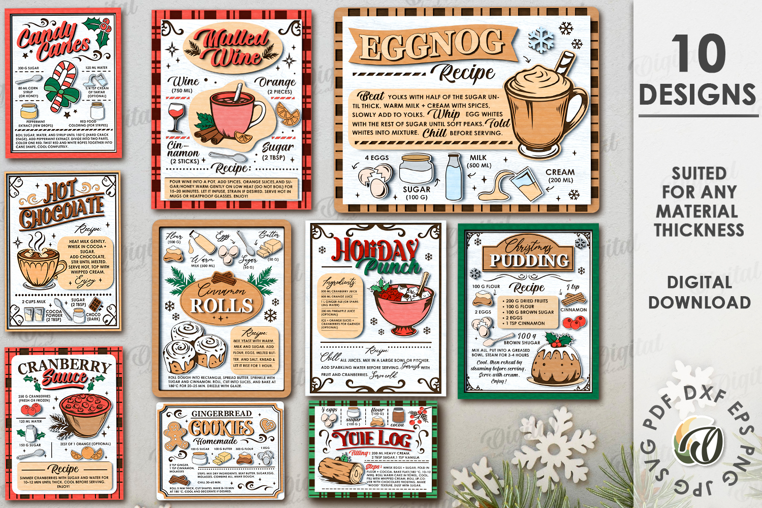 Christmas Recipe Signs Bundle Laser Cut. Wall decor SVG