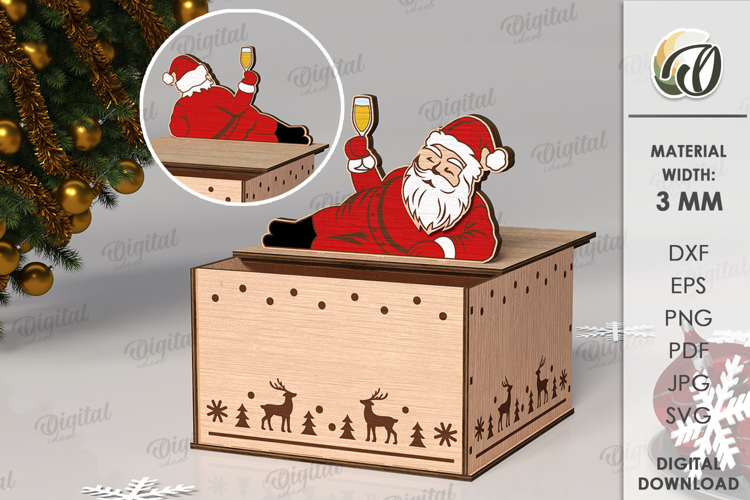 Christmas Svg Gift Box Kids Svg Wooden Box Christmas Gift Svg Santa Claus Svg 3d Box 3d Laser Cut Christmas Laser Stand Laser