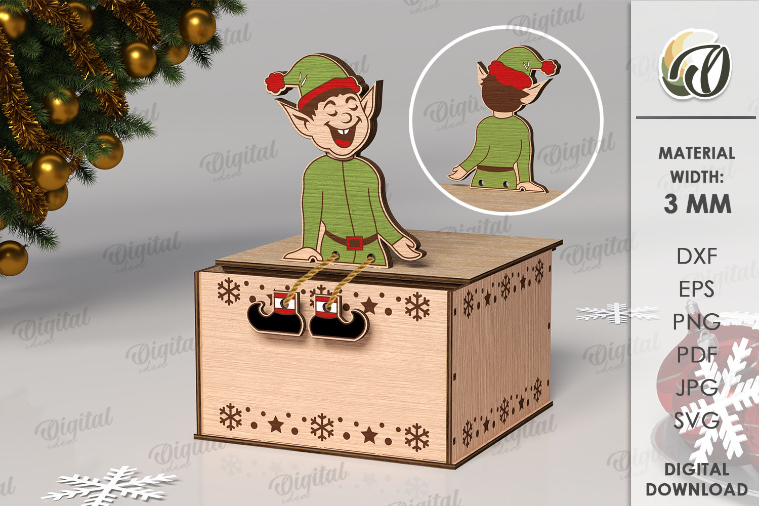Christmas Svg Gift Box Kids Svg Wooden Box Christmas Gift Svg Elf Christmas Svg 3d Box 3d Laser Cut Christmas Laser Stand Laser