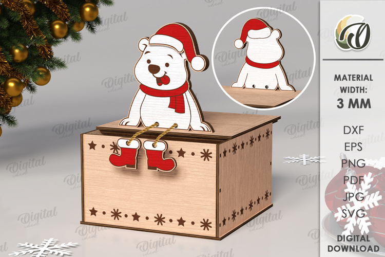 Christmas Svg Gift Box Polar Bear Kids Svg Wooden Box Christmas Gift Svg 3d Box 3d Laser Cut Christmas Laser Stand Laser
