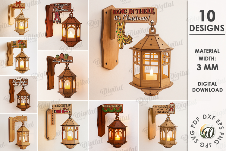 Christmas Lantern Wall Decors Bundle Lasercut. Christmas SVG