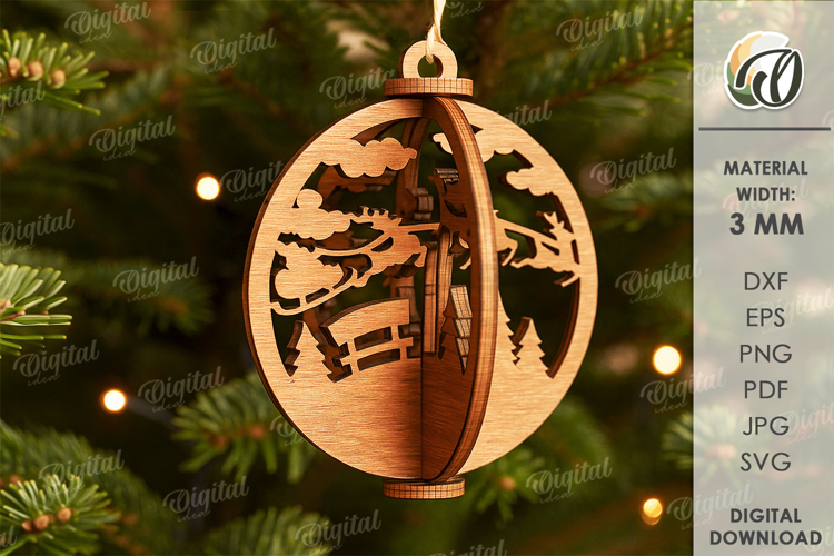 3D Christmas Ornament Laser Cut. Christmas Tree Decor SVG