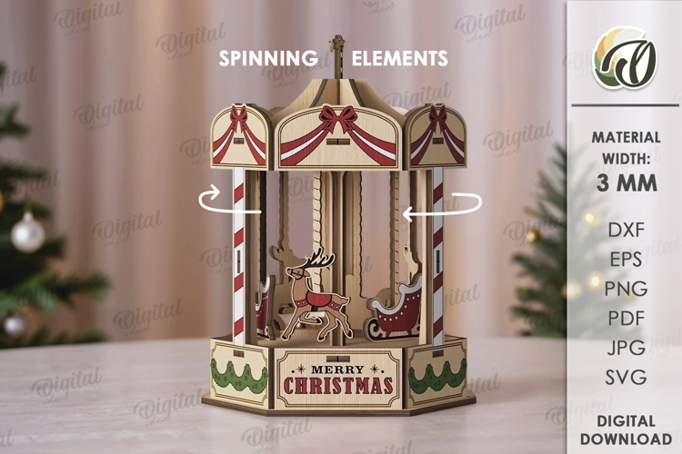 3D Spinning Carousel Laser Cut. Stand Decor SVG example image 1