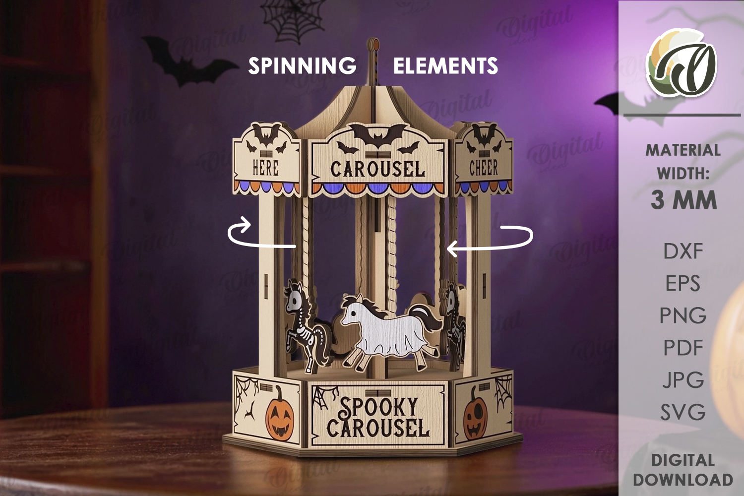 Spooky Kids Svg Carousel Tabletop 3d Laser Cut Halloween Laser Laser Cut Stand Stand Laser Children Laser Shelf Sitters
