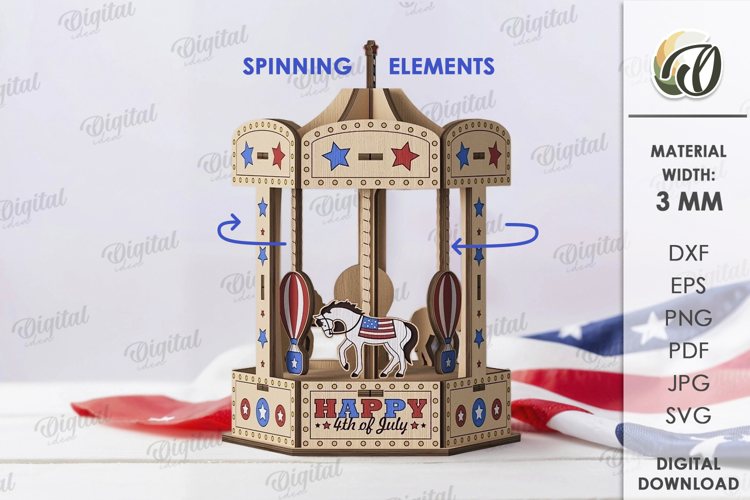 Kids Svg Carousel Tabletop Happy 4th Of July Svg 3d Laser Cut Horse Laser Laser Cut Stand Stand Laser Children Laser Shelf Sitters