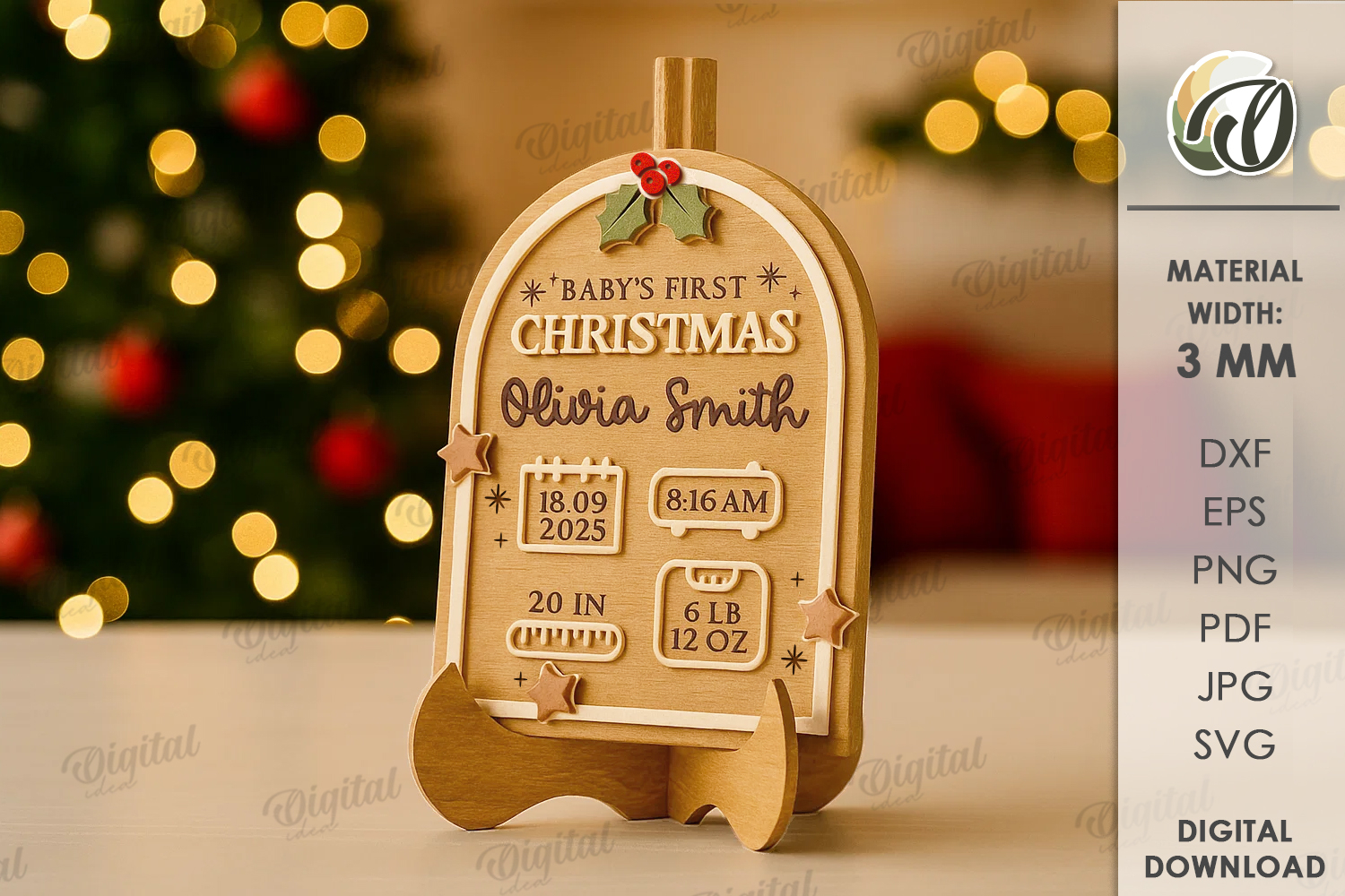 Christmas Svg First Christmas Svg Personalized Svg Baby First Babys First Christmas Svg Baby Birth Stats Svg 3d Laser Cut Christmas Laser Stand Laser Kids Laser