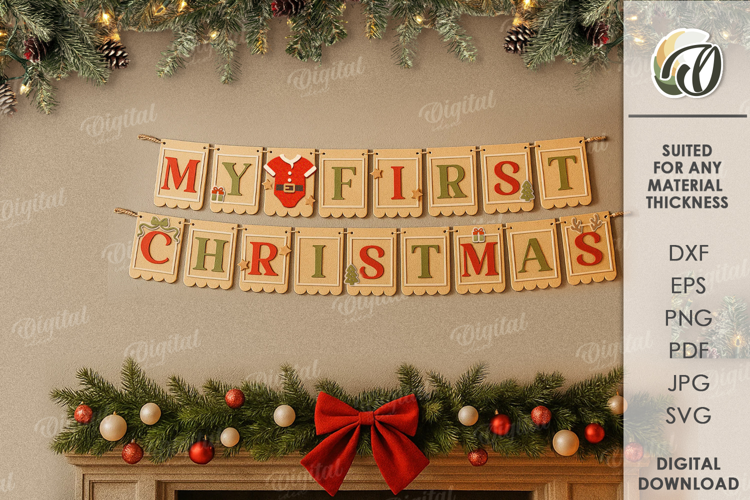 Christmas Svg Banner Svg Wall Decor First Christmas Svg Baby First Babys First Christmas Svg 3d Laser Cut Christmas Laser Christmas Ornament Laser Kids Laser