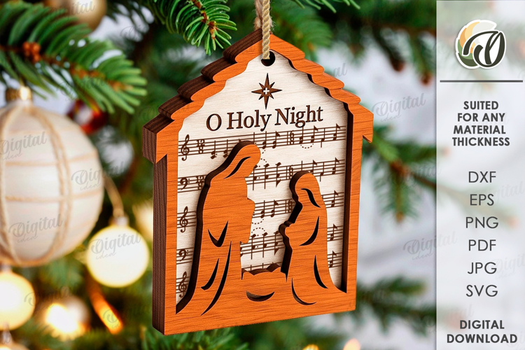 Nativity Ornament Laser Cut. Christmas Tree Decor SVG
