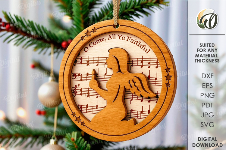 Religious Svg Nativity Musical Notes Angel Svg Laser Cut Ornaments Layered Ornament 3d Laser Cut Christmas Laser Christmas Tree Ornament Laser Cut Christian Laser