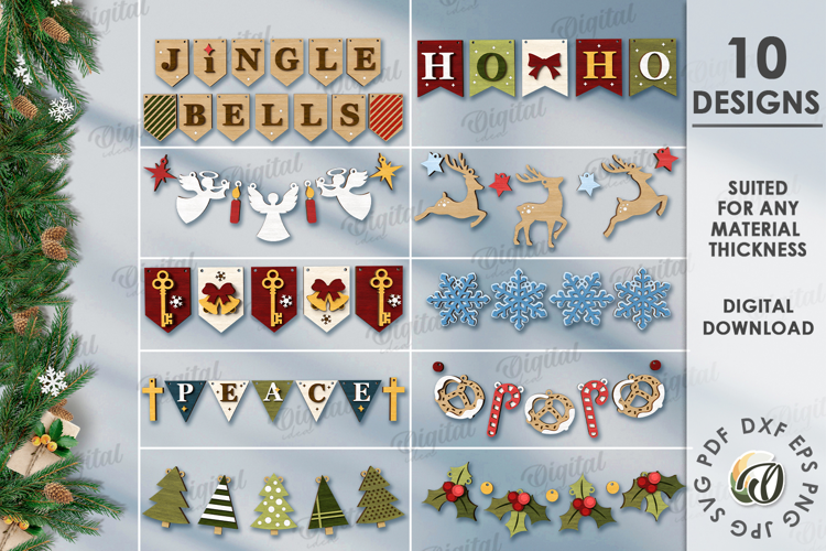 Christmas Banners Bundle Laser Cut. Christmas Decor SVG