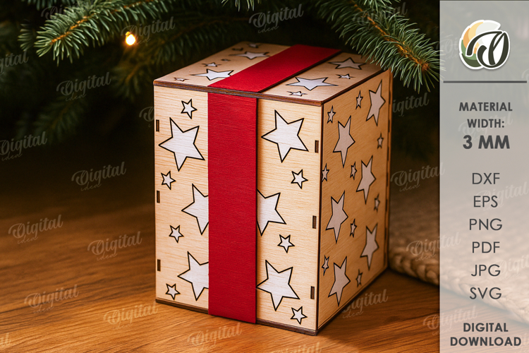 Christmas Decorative Gift Box Laser Cut. Christmas Box SVG