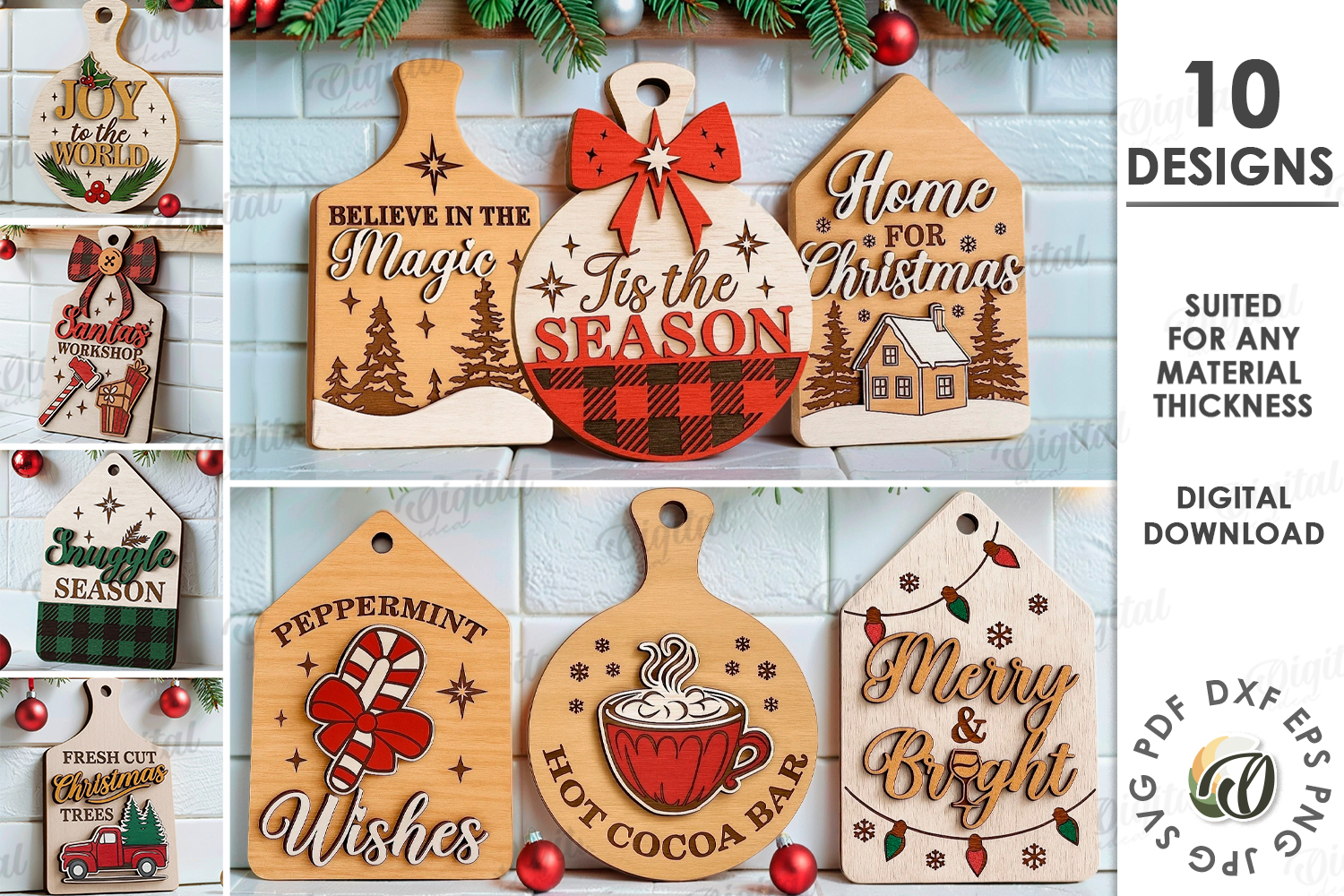 Christmas Mini Cutting Boards Bundle Laser Cut. Kitchen SVG