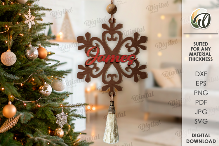 Christmas Svg Snowflake Svg Personalized Hanging Christmas Ornament Home Decor Laser Ornament 3d Laser Cut Christmas Laser Christmas Decoration Ornament